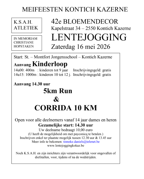42ste editie van de lentejogging inschrijven en info lentejogging Dit delen: Share op Facebook (Opent in een nieuw venster) Facebook Delen op WhatsApp (Opent in een nieuw venster) WhatsApp Vind-ik-leuk Aan het laden...